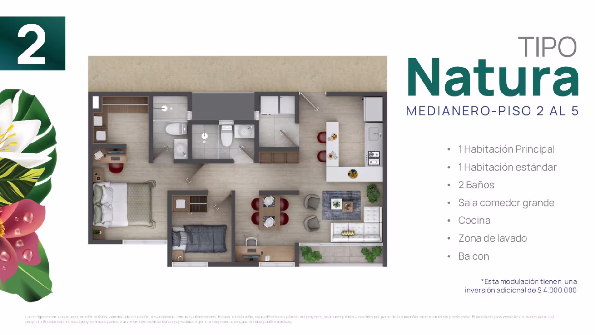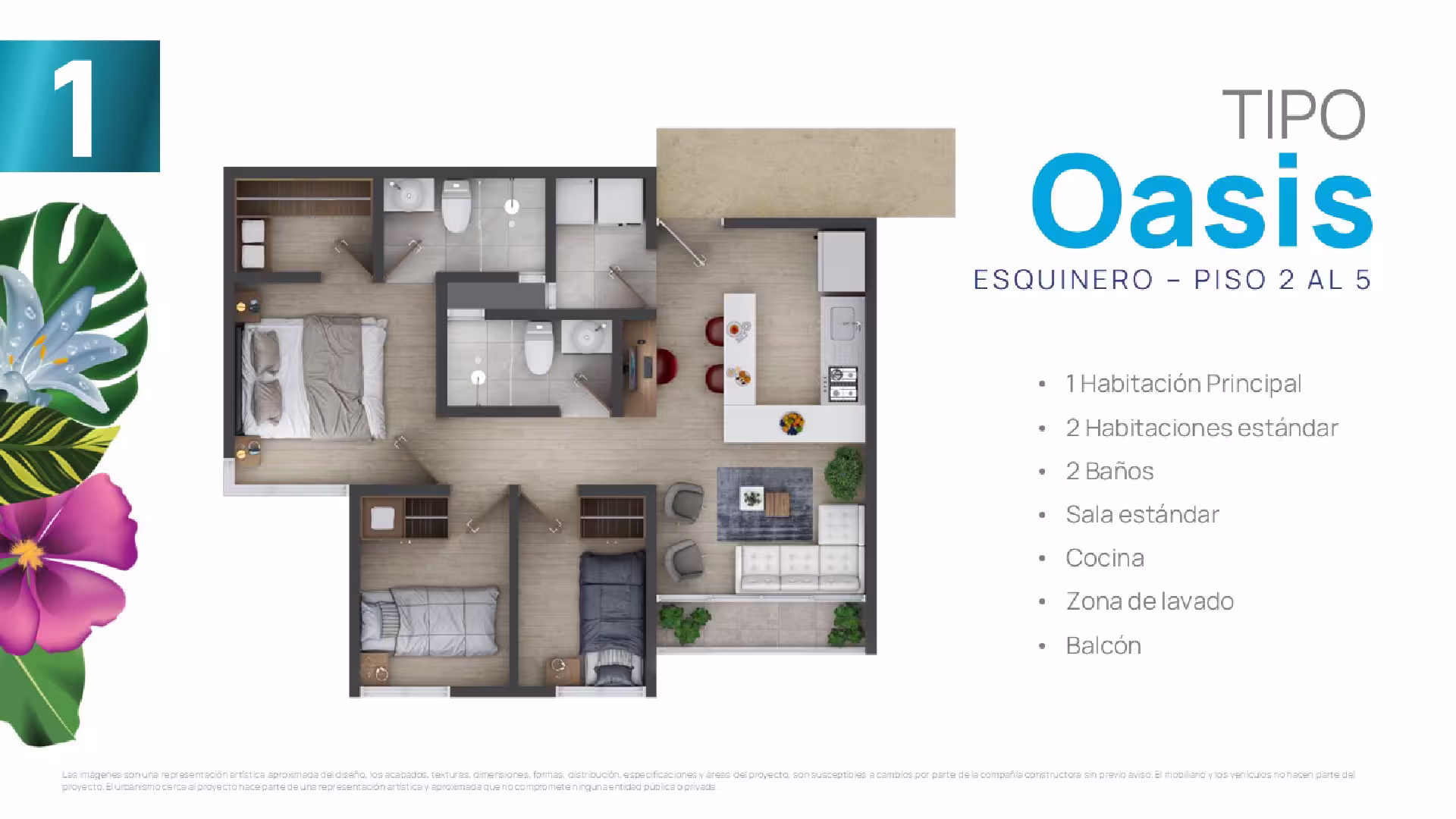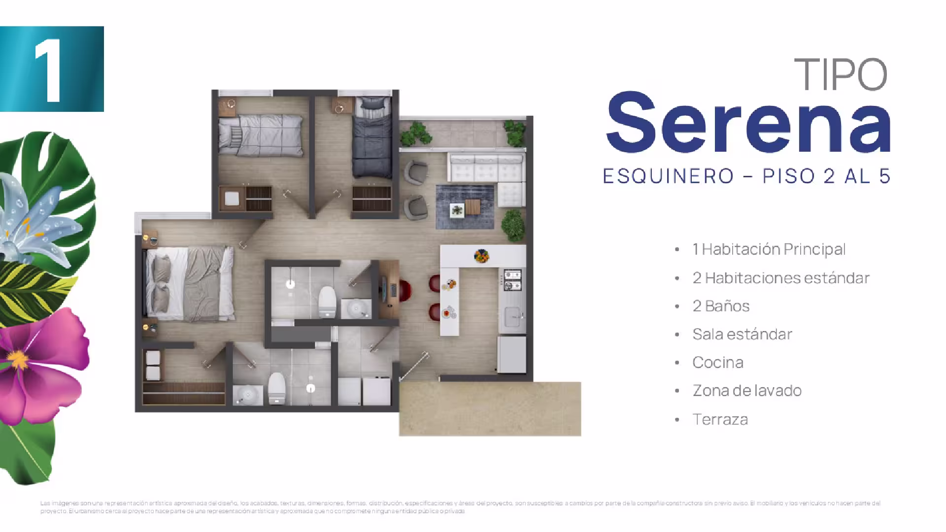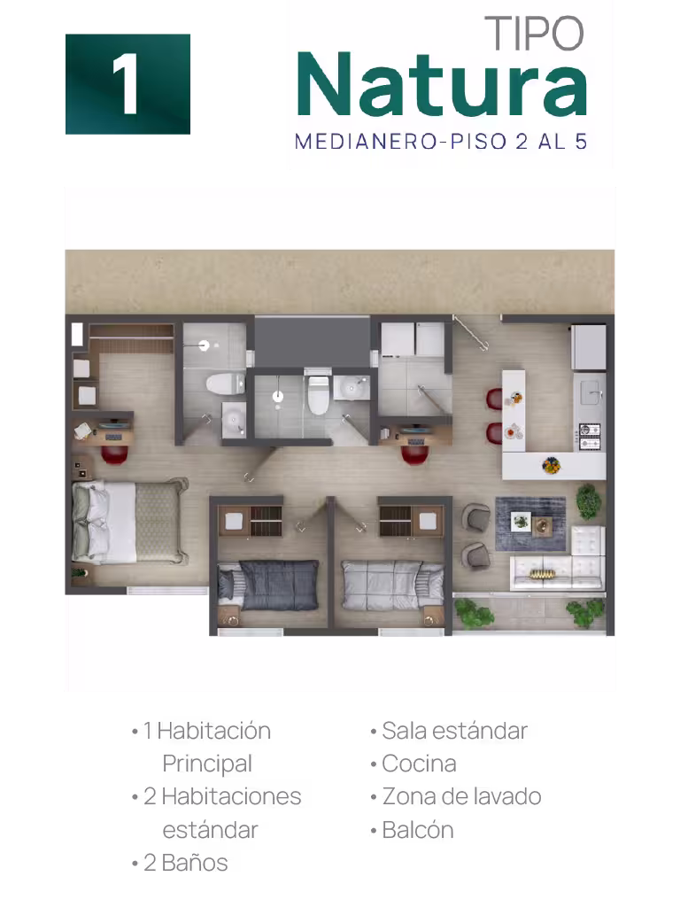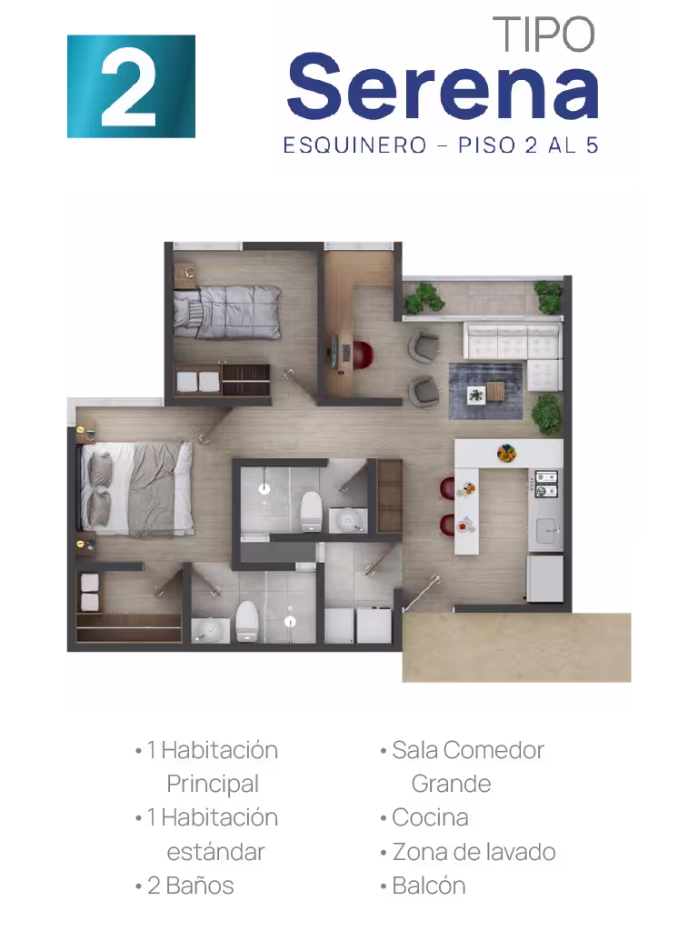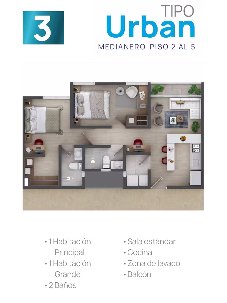 En cada torre encontrarás cuatro tipos de suites, cada una adaptable a tus gustos y necesidades. Elige tu suite y personalízala ajustando los espacios según tus preferencias, estilo de vida o las necesidades familiares. Esta flexibilidad te ofrece la oportunidad de configurar tu hogar a la medida